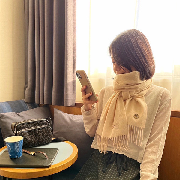 YSL鈕扣與親膚羊絨圍巾-奶油白